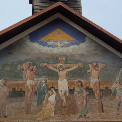 Nach einer Agape, bereitgestellt von der rüstigen Mesnerin, ging es dann am Jakobsweg bis nach Klopein zu einer Kaffeepause, bevor das Tagesziel Stein/Jauntal erreicht wurde. Von Valentin und Gottfried, zwei Experten des Kulturvereins erfuhren die Pilger viel Wissenswertes über den von Künstlern gestalteten Kreuzweg und Karner.