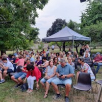 Witterungsbedingt musste das Programm zum Bedauern aller um einige Minuten früher als geplant enden und der Schlußapplaus wurde von Blitz und Donner begleitet.