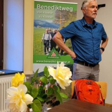 Auf allen vorbereiteten Sitzplätzen hatten am Freitagabend (2.6.) um 19.00 Uhr im Vortragssaal des Hauses St. Benedikt (ehemaliges Kapuzinerkloster) in Wolfsberg InteressentenINNEN Platz genommen und das freute uns Organisatoren vom „Benedikt-Pilgerverein“ sehr. Theresa und Martin Kopp – sie sind Preisträger von „PRIMA LA MUSICA 2023“ – begleiteten einfühlend musikalisch die Veranstaltung ein und schlossen den Vortrag am Ende auch ab. P. Siegfried erläuterte die österreichweite Aktion „LANGE NACHT DER KIRCHEN“ und Dr. Johannes Mayer – als Obmann des Benedikt-Pilgervereines begrüßte alle – die unserer Einladung gefolgt waren und vor allem den Referenten Dr. Hans Mosser. Den ansprechenden Texten über das Pilgern ganz allgemein – schloss der Referent dann seinen ansprechenden Pilgerbericht an – mit all den vielen beeindruckenden Erfahrungen von seiner Pilgerwanderung 2022 von Spital/Pyhrn über St. Paul bis nach Aquileia. Die Resonanz am Ende der Veranstaltung war unisono sehr sehr positiv. Außerdem hatten wir an diesem Abend eine gute Gelegenheit unserer Schriftführerin Christine vom Benedikt-Pilgerverein zu ihrem kürzlich gefeierten Geburtstag zu gratulieren.