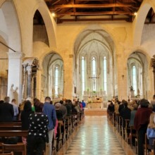 Der Weg führte über die Hügel nach Gemona, wo sie am späten Nachmittag im Hotel eintrafen. Nach einer kurzen Erfrischungspause ging es am Abend zurück hinauf zum Dom, wo eine Abendmesse gefeiert wurde.