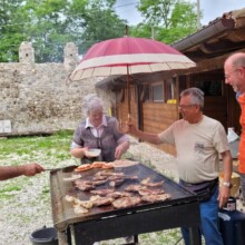 Während das Abendessen am Griller brutzelte, erfuhren die Pilger interessante Details über das Projekt des Wiederaufbaus dieses besonderen Ortes.