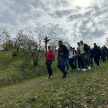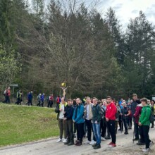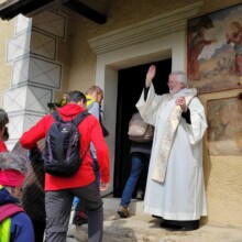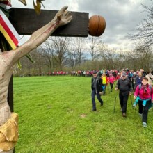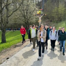 Eine Stunde später übernahmen Schüler:innen des Stiftsgymnasiums das Kreuz und gemeinsam ging es weiter zur Johannesbergkirche, wo die Pilgergruppe von P. Siegfried Stattmann erwartet wurden.