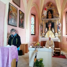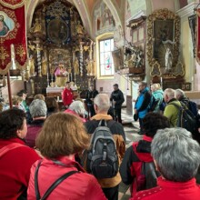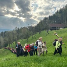 Heuer versammelten sich ca. 120 Menschen aus nah und fern um gemeinsam diesen Pilgertag zu begehen. Begonnen wird mit einem Morgenlob, danach erfolgt unter Glockengeläute der gemeinsame Auszug. Betend geht es bergabwärts, immer das Kreuz voran. Nach der Überquerung der Lavant führt der Pilgerweg auf der anderen Talseite bergauf durch einen Laubwald, wo das frische Grün von den Pilger:innen als sehr wohltuend empfunden wird. Nach einer kurzen Rast am Fuß des Josefsberg beginnt der nächste Aufstieg zur Kirche, welche dem hl. Josef geweiht ist.