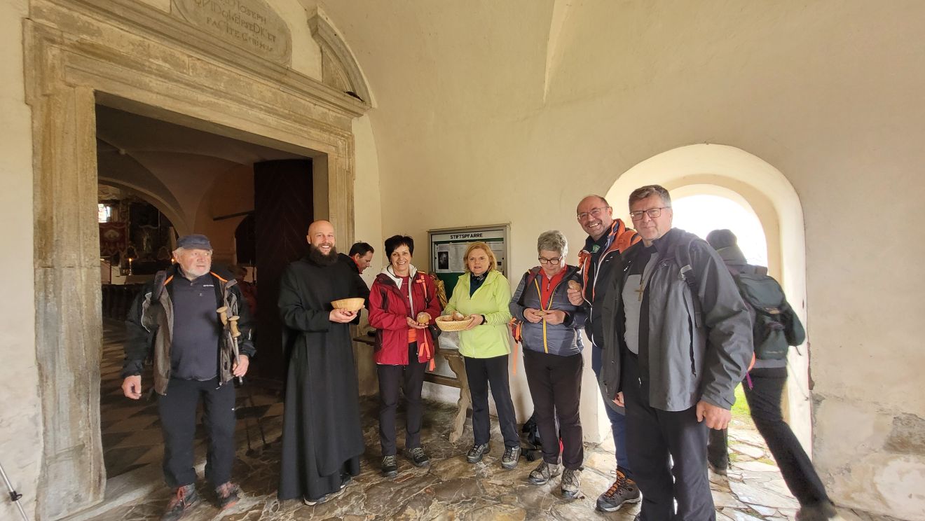 Eine Stunde später übernahmen Schüler:innen des Stiftsgymnasiums das Kreuz und gemeinsam ging es weiter zur Johannesbergkirche, wo die Pilgergruppe von P. Siegfried Stattmann erwartet wurden.