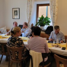Am Samstag wurde die Anwesenheit der Gäste aus Oberösterreich, Steiermarkt u. Slowenien genutzt um erstmals eine gemeinsame Vorstandssitzung abzuhalten. In der dreistündigen Sitzung wurde unter anderem über die Aktivitäten der beiden Vereine besprochen- die Pilgerwanderungen zur Eröffnung der Pilgersaison sowohl in Kärnten (26. März) als auch in Oberösterreich am 13. April. Ausführlich wurde jedoch über die Vorbereitungen zum Heiligen Jahr 2025 gelegt, welches unter dem Motto „Pilger der Hoffnung“ steht. In Zusammenarbeit mit dem europäischen Kulturpfad ROMEA STRATA sind viele Veranstaltungen geplant und es gibt dabei die Möglichkeit durch das Besuchen besonderer Orte (sog. Points of Interests) einen Pilgerpass aus Rom zu erhalten. Details sind noch in Ausarbeitung.