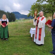 Am Gedenktag der hl. Margaretha trafen sich am Abend zahlreiche Gläubige und Pilger:innen zu einem Festgottesdienst in der Filialkirche St. Margarethen, zelebriert vom Stiftspfarrer des Benediktinerstifts St. Paul P. Marian Kollmann OSB. Die musikalische Gestaltung hatte eine Kleingruppe des MGV St. Paul übernommen. Nach dem Schlussgebet ging es hinaus vor die Kirche, wo eine Evangelienstation mit eucharististem Segen gehalten wurde.