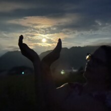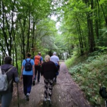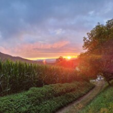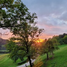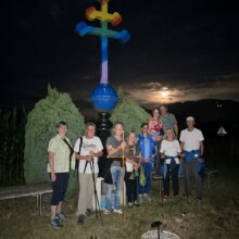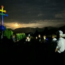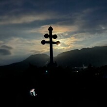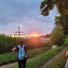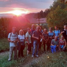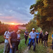 Die Pilger:innen brachen dann auf um gemeinsam auf einem altem Wanderpfad über den Lubitschkogel und am Fusse des Weinbergs zurück nach St. Paul zu gehen. Der (Wetter-)Gott war auf der Seite der Pilger, denn aus der 50%igen Regenvorhersage gab es perfektes Wanderwetter und nach einem prächtigen Sonnenuntergang ging es bei der Dämmerung weiter zum Benediktpilgerkreuz am Ortsende von St. Paul, wo dann gegen 22.00 Uhr bei Vollmond die Pilgerwanderung mit einem Abendgebet endete.