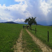Die letzten Kilometer nach Sv. Daniel begleitete Donner die Pilgerschar, und trieb sie schnellen Schrittes an ihr Ziel, wo sie von Hr. Danilo von der Gostilna Pečolar schon vor der Kirche erwartet wurden. Die Wolken hatten ihre schwere Last weitestgehend zurückgehalten, bis die Pilgerinnen bei der ausgezeichneten Pilgersuppe, die ihnen in der Gostilna kredenzt wurde, saßen. Vom danach servierten Apfelstrudel wird wohl so manche Pilgerin in der Nacht geträumt haben, so himmlisch hat er geschmeckt.