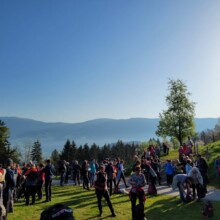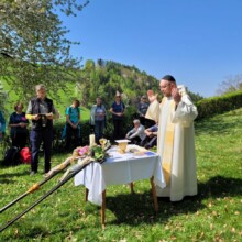 In den frühen Morgenstunden des sog. 3-Nagel-Freitags machten sich mehr als 140 Leute aus nah und fern auf dem Weg um gemeinsam über 3-Berge in der Nähe von Paul zu pilgern. Begonnen wurde in der Weinbergkirche – mit einem Morgenlob geleitet von Maria Wright. Als Vorsänger fungierte Hans Kopp, der sein musikalisches Talent wieder wunderbar zum Einsatz bringen konnte. Dann erfolgte der gemeinsame Aufbruch, voran heuer erstmals 2 Kreuze – getragen von Pilgern aus Klagenfurt. Betend ging es bergab und bald überquerte die Pilgergruppe die Lavant um anschließend bergan über Loschental zum Josefsberg zu gehen.