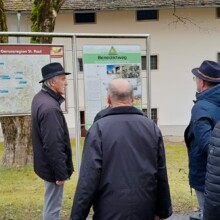 Silvio Pecoler vom Verein Benedikt be-WEG-t machte eine kleine Führung und erklärte in slowenischer Sprache das romanische Kirchengebäude, seine Kanzel, das Stifterfresko der Spannheimer und die Grablege der frühen Habsburger. Die Besucher zeigten sich sehr interessiert.