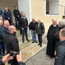 Pfarrer Ivan Hrastnik lud alle Mitarbeiter und Mesner seiner vier Pfarren Gornji Grad, Radmirje, Bočna und Nova Štifta  ein und machte einen Pfarrausflug ins Lavanttal. P. Siegfried Stattmann OSB hieß die ausschließlich aus Männern bestehende Gruppe mit Glockengeläute im Stift St. Paul willkommen. Hannes Maier, Obmann des Vereins Benedikt be-WEG-t war mit dabei.
