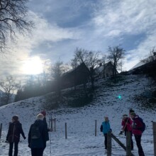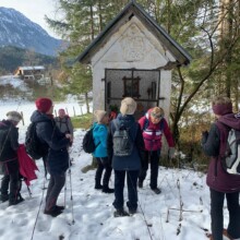 Bereits zum dritten Mal machten wir uns am Samstag, vor Beginn der Adventszeit auf den Weg und pilgerten auf dem Benediktweg von der Pfarrkirche in Windischgarsten zur Adventkranzsegnung nach Spital/Pyhrn. Zu meiner großen Freude haben sich mir heuer bereits 8 Frauen angeschlossen! Pünktlich um 9.30 Uhr starteten wir bei perfektem Wetterverhältnissen. Im Winterwunderland des Fraitgrabens ging es entlang bis zur Mittagspause bei der Danschbacher Kapelle, wo wir nach einem Gebet und Gesang genüsslich unsere Jause verspeisten. Anschließend ging’s beim Grössinger vorbei bis zum Hansl im Brand mit der hauseigenen Kapelle! Von dort war es nur noch ein kleines Stück bis zur Konditorei Kemetmüller, wo wir uns mit Kaffee und Mehlspeisen belohnten um anschließend gemeinsam die Adventkranzsegnung in unserer Stiftskirche mitzufeiern!