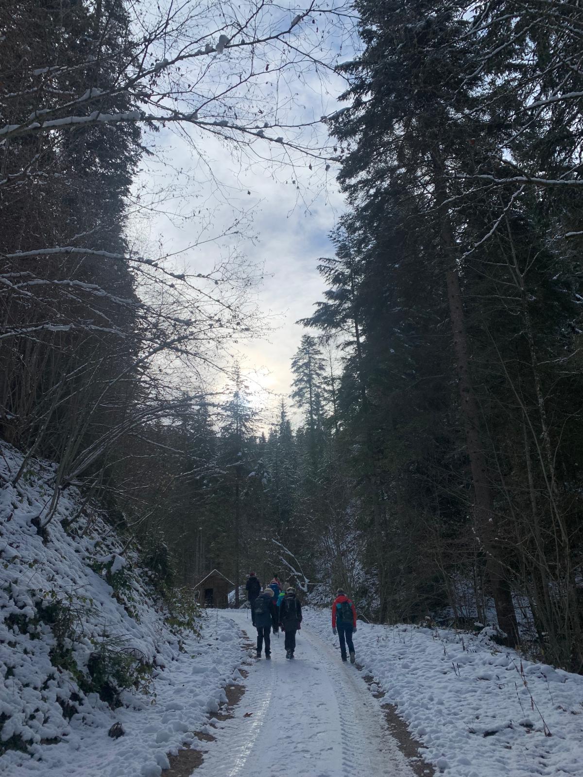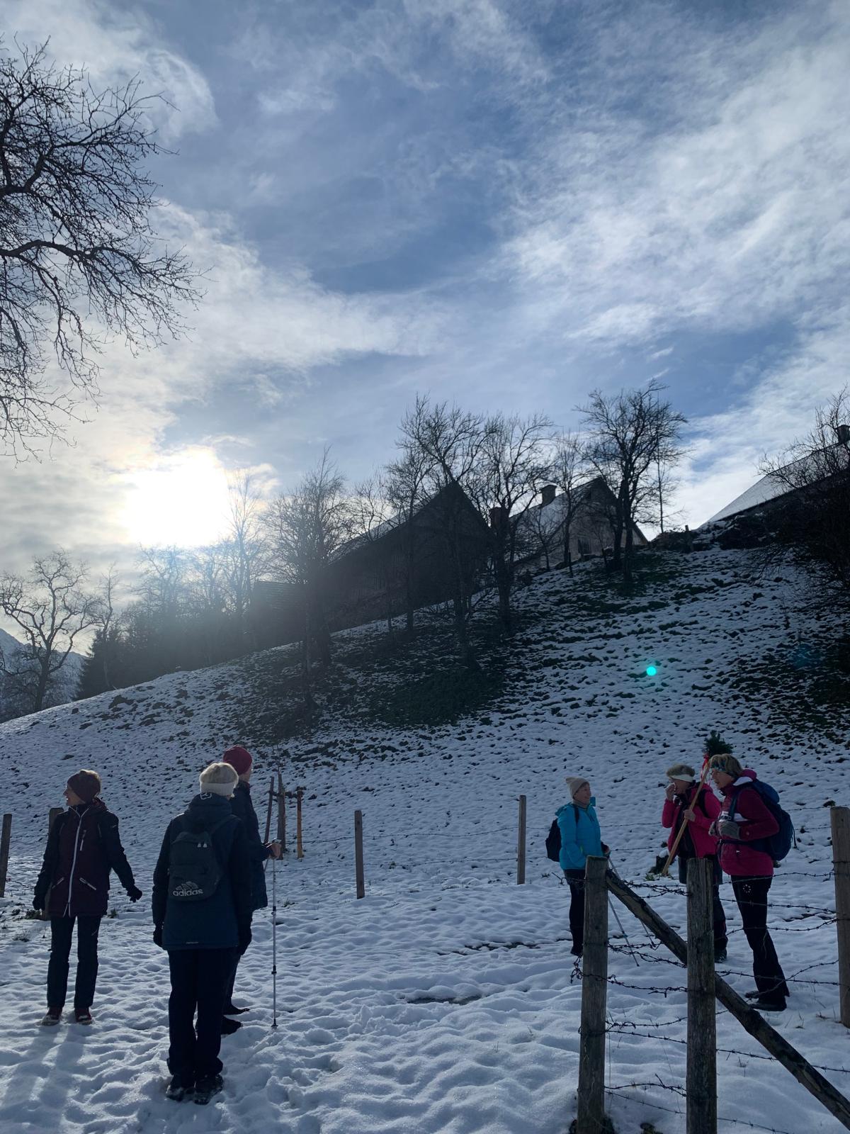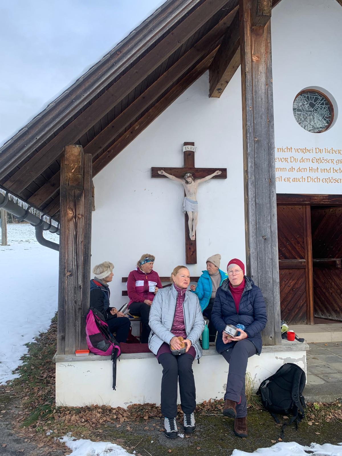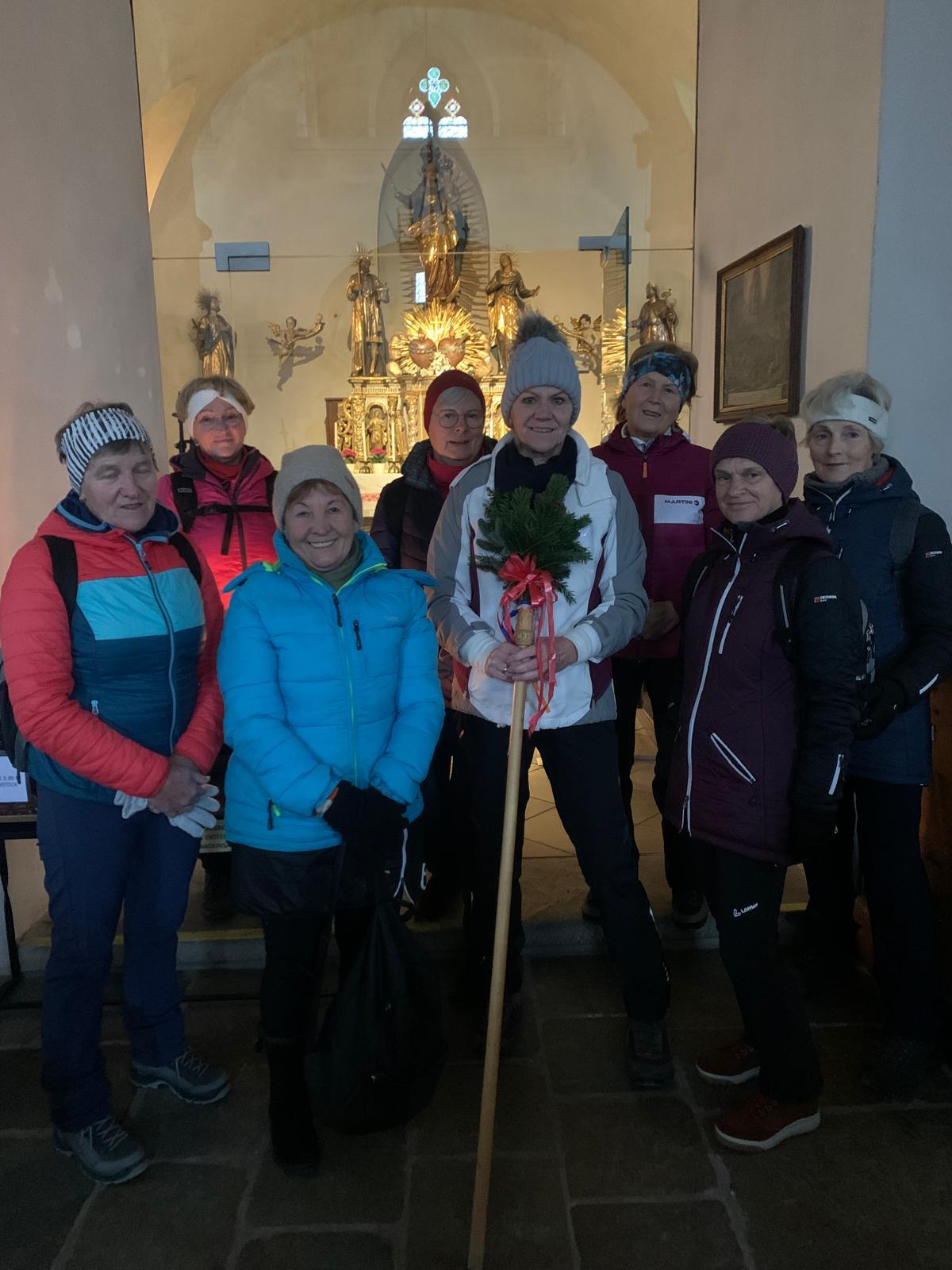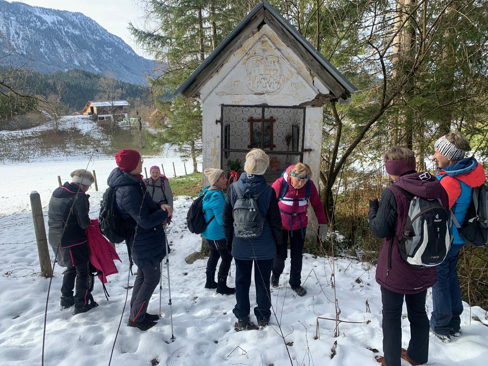 Bereits zum dritten Mal machten wir uns am Samstag, vor Beginn der Adventszeit auf den Weg und pilgerten auf dem Benediktweg von der Pfarrkirche in Windischgarsten zur Adventkranzsegnung nach Spital/Pyhrn. Zu meiner großen Freude haben sich mir heuer bereits 8 Frauen angeschlossen! Pünktlich um 9.30 Uhr starteten wir bei perfektem Wetterverhältnissen. Im Winterwunderland des Fraitgrabens ging es entlang bis zur Mittagspause bei der Danschbacher Kapelle, wo wir nach einem Gebet und Gesang genüsslich unsere Jause verspeisten. Anschließend ging’s beim Grössinger vorbei bis zum Hansl im Brand mit der hauseigenen Kapelle! Von dort war es nur noch ein kleines Stück bis zur Konditorei Kemetmüller, wo wir uns mit Kaffee und Mehlspeisen belohnten um anschließend gemeinsam die Adventkranzsegnung in unserer Stiftskirche mitzufeiern!