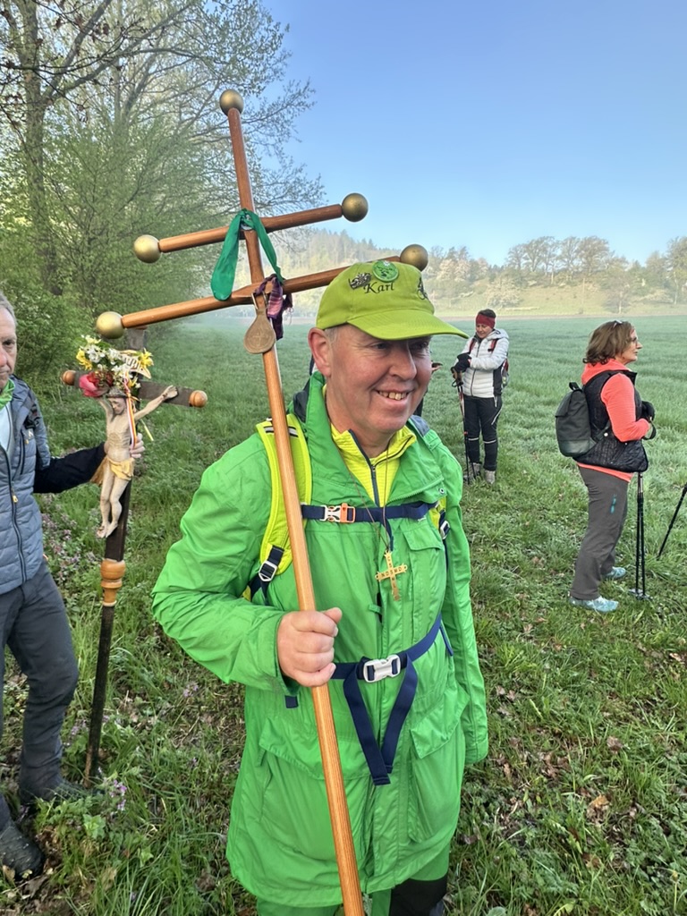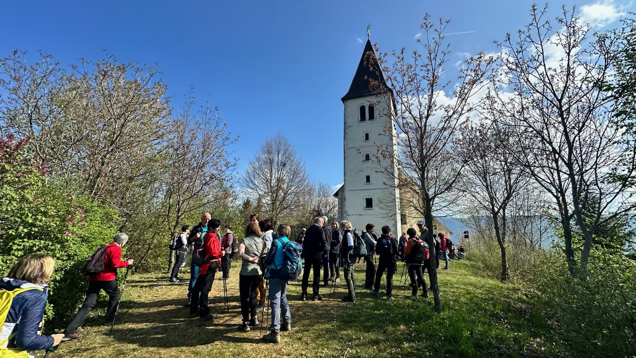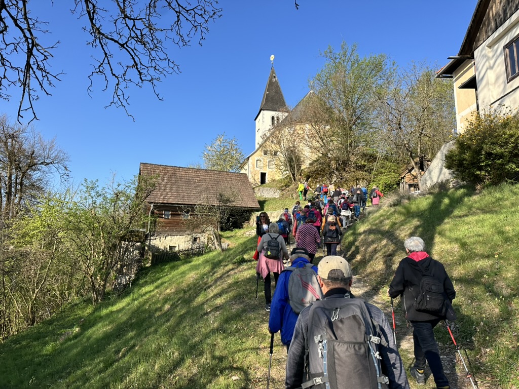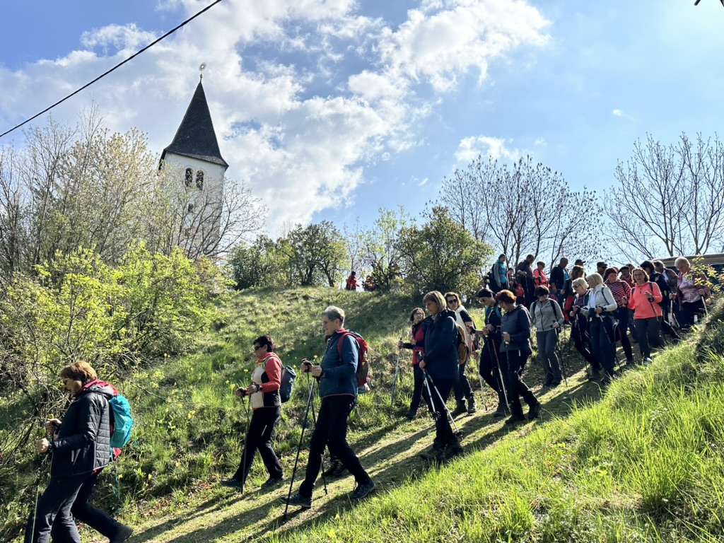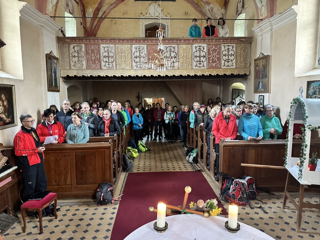 Die Tradition des Drei-Nagel-Freitag-Wallfahrens lebt immer mehr auf. Bestens von Ing. Barbara Pecoler vorbereitet fanden sich zahlreiche Pilgerinnen und Pilger aus nah und fern bei der 1. Station in der Weinbergkirche, dem Hl. Benedikt geweiht, ein. Barbara leitete die Andacht und gab der großen Schar viele gute Gedanken für das Pilgern und den Segen mit. Hans Kopp stimmte mit den Anwesenden Kirchenlieder an.