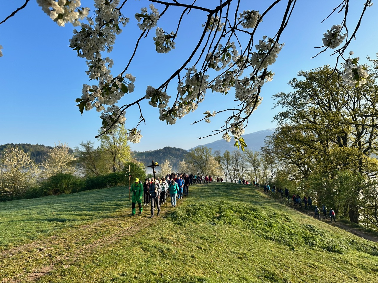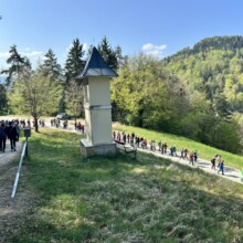 Am Dreinagelfreitag lud die Stiftspfarre St. Paul mit dem Verein Benedikt be-WEG-t für 6:30 zur St. Pauler Drei-Berge-Wallfahrt und Pilgerwanderung ein. Bereits über 100 WallfahrerInnen fanden sich frühmorgens in der Weinbergkirche ein. Die Gruppe wanderte von dort hinunter und durch das mystische-nebelige Tal auf der anderen Seite den Josefsberg hinauf. Nach einer besinnlichen Andacht und einer angenehmen Pause bei herrlicher Frühlingssonne ging es dann noch zum 3. St. Pauler Berg, dem Johannesberg, wo P. Thomas Petuschnig die Abschlussmesse hielt.