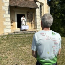 Wieder ging es ein Stück bergab und dann wieder hinauf zur dritten und letzten Station, dem Johannesberg. Dort zelebrierte P. Thomas die Abschlussmesse, diesmal gab es die „Brotvermehrung“ geschildert vom Evangelisten Johannes, wo nicht die Jünger zunächst die 5 Brote und 2 Fische für die 5000 ‚Männer‘ herbeibrachten, sondern ein kleiner Junge, wie auch die Leute selbst. Wir alle können teilen, wenn wir wollen, damit alle satt werden, ist hier die feine, versteckte Botschaft an uns alle. Die reichliche Kollekte wurde daher der Caritas Kärnten zweckgewidmet.