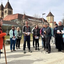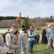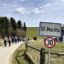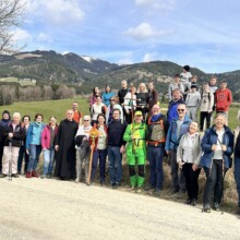 Emmaus-Pilgerinnen und Pilger“, jung und etwas älter, machten sich heute auf eine besinnliche Pilgerwanderung vom Stift Seckau nach St. Martha. Nach der feierlichen Ostermontagmesse in der Basilika ging es den Kirchsteig hinunter. An vier Wegkreuzen hielt die Gruppe inne. Angela Pichler trug Gebete für den Frieden vor und stimmte frohe Lieder an. Br. Martin und Wilhelm Pichler trugen Impulse zum Pilgern bzw. Schutz der Natur vor. Am Ziel gab es eine abschließende Andacht in der schmucken Filialkirche St. Martha. Beim Prankherwirt stärkten sich die PilgerInnen noch mit einer kräftigen Pilgersuppe. Vielen Dank für dieses schöne Ostererlebnis.