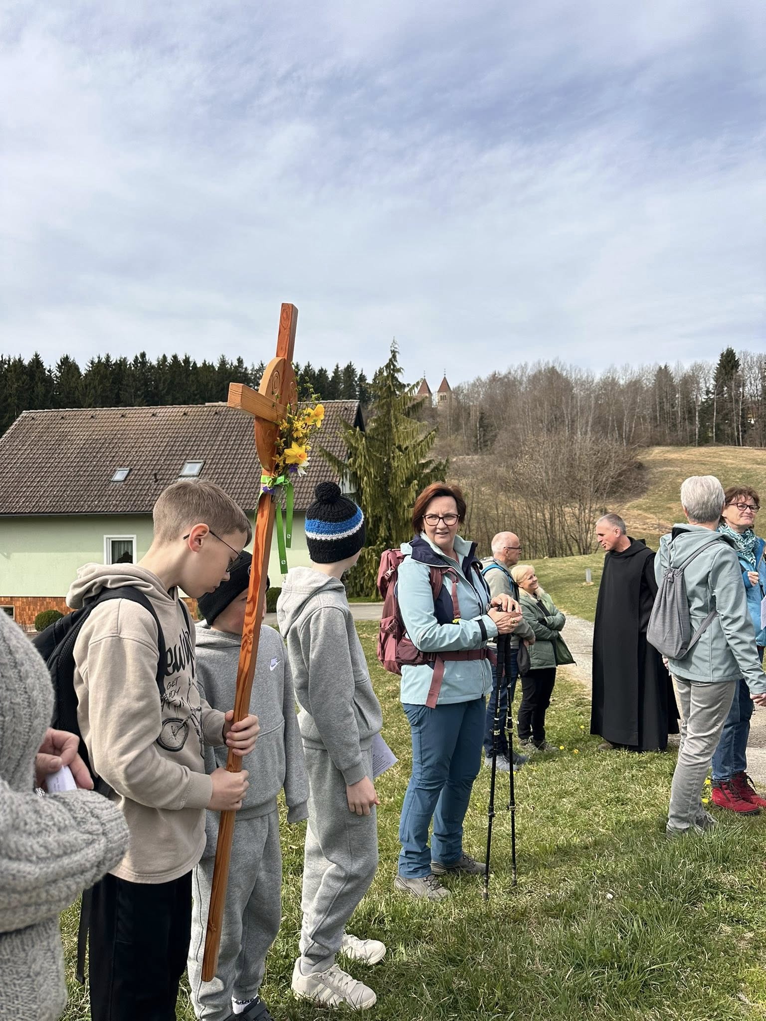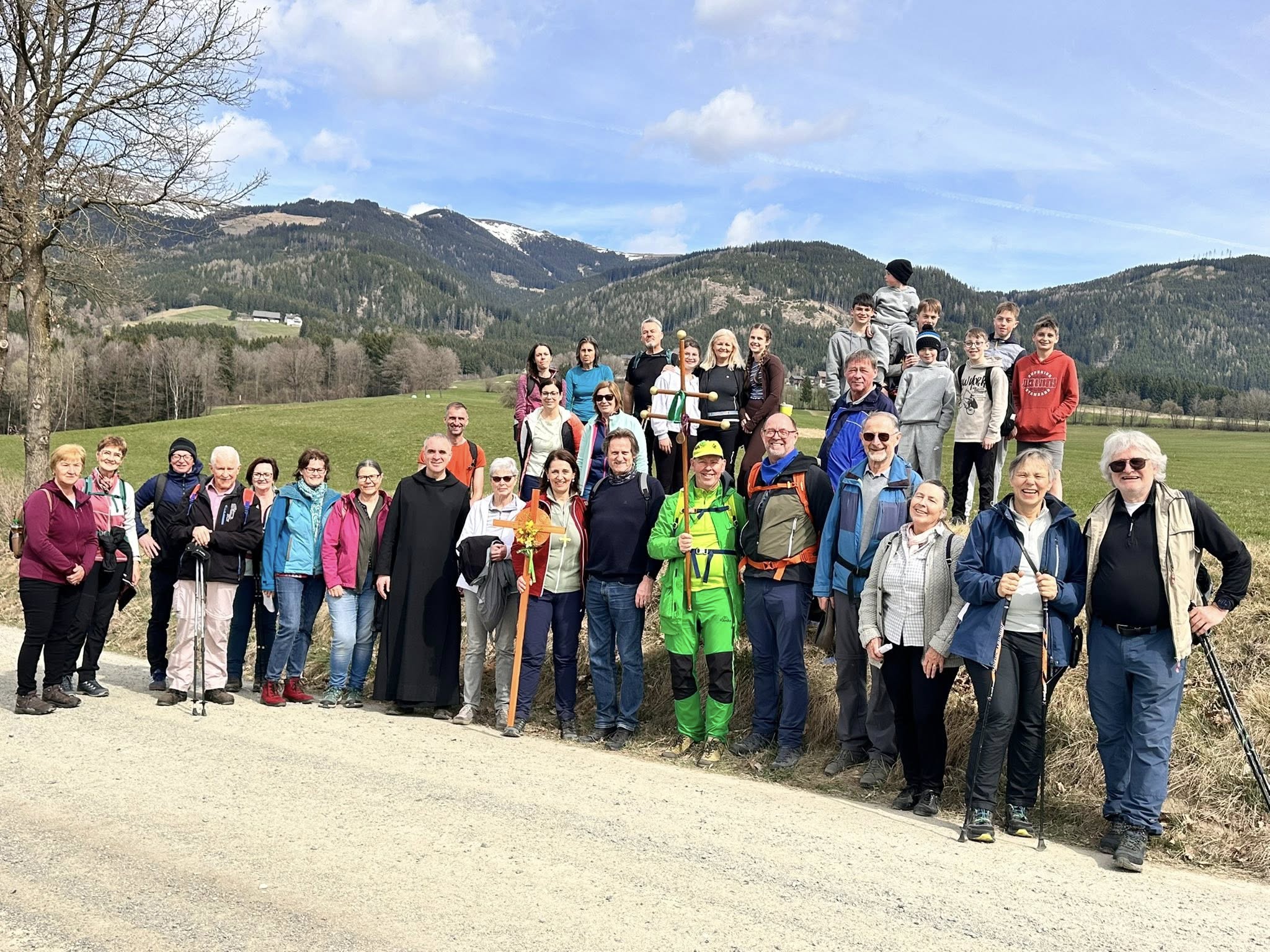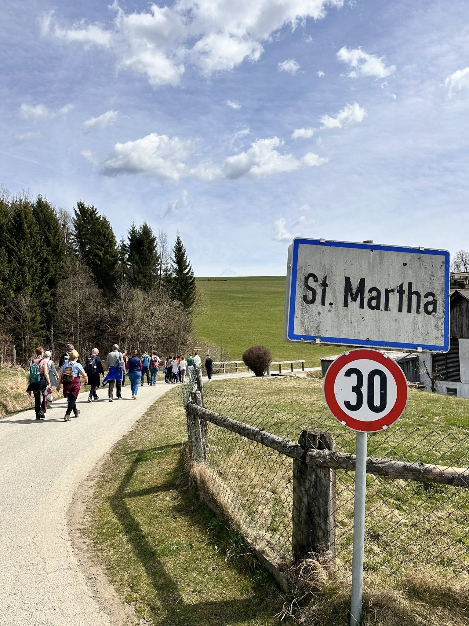 Emmaus-Pilgerinnen und Pilger“, jung und etwas älter, machten sich heute auf eine besinnliche Pilgerwanderung vom Stift Seckau nach St. Martha. Nach der feierlichen Ostermontagmesse in der Basilika ging es den Kirchsteig hinunter. An vier Wegkreuzen hielt die Gruppe inne. Angela Pichler trug Gebete für den Frieden vor und stimmte frohe Lieder an. Br. Martin und Wilhelm Pichler trugen Impulse zum Pilgern bzw. Schutz der Natur vor. Am Ziel gab es eine abschließende Andacht in der schmucken Filialkirche St. Martha. Beim Prankherwirt stärkten sich die PilgerInnen noch mit einer kräftigen Pilgersuppe. Vielen Dank für dieses schöne Ostererlebnis.