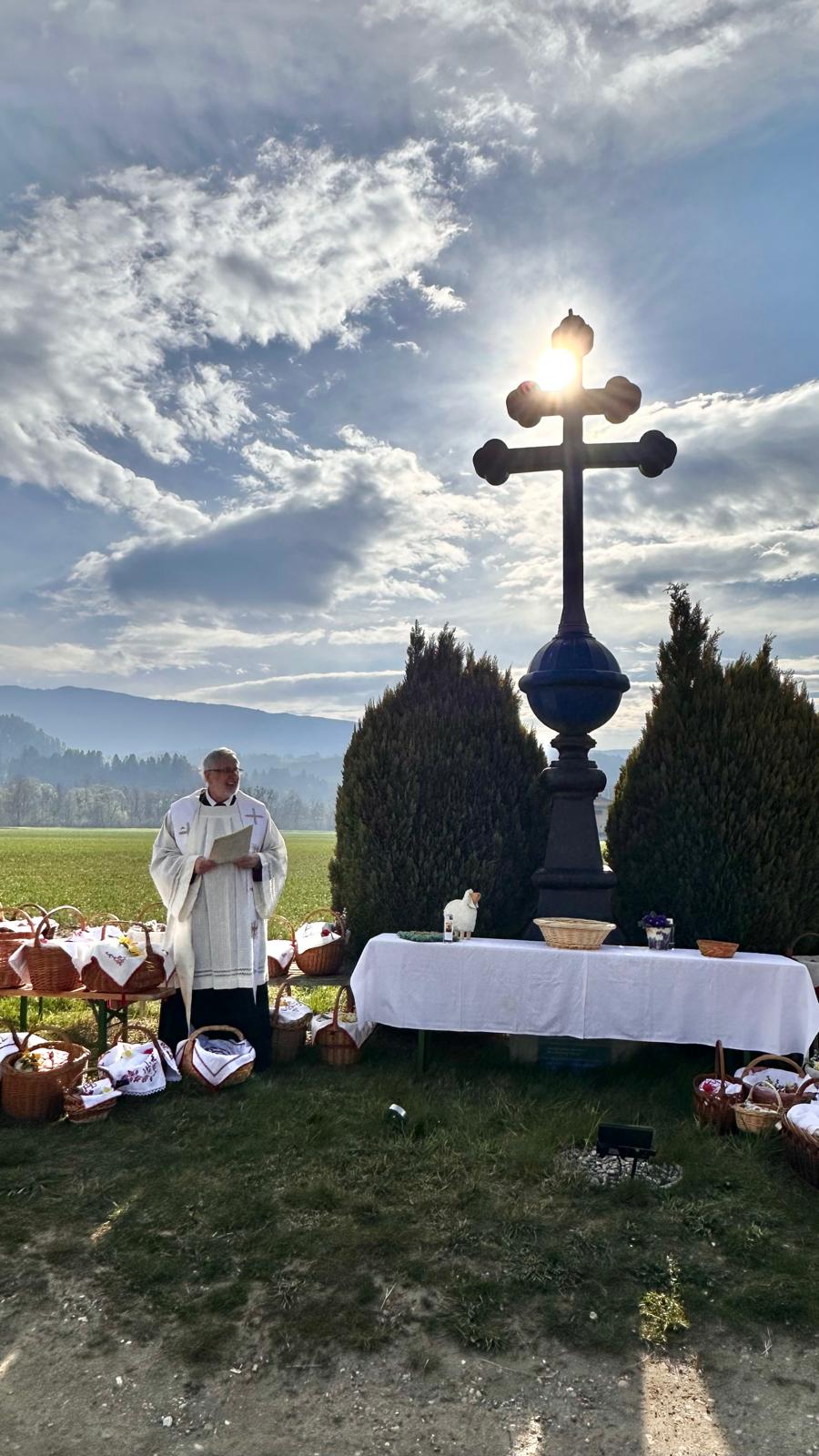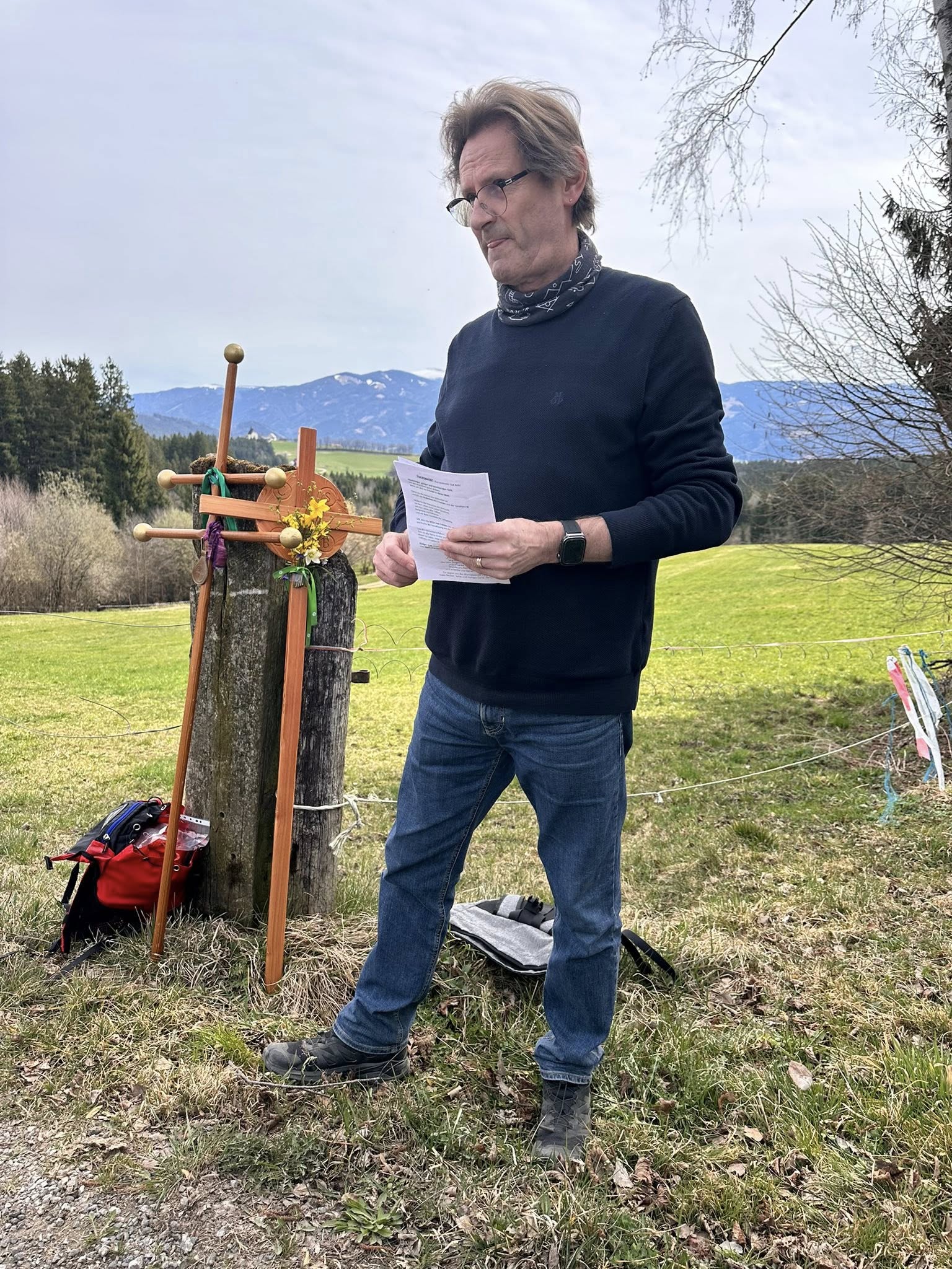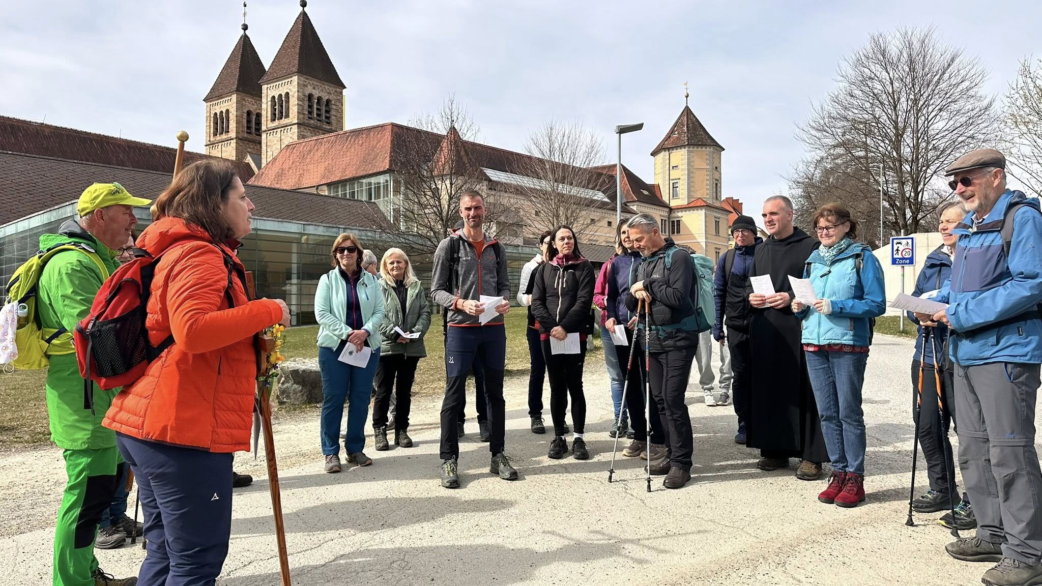 Emmaus-Pilgerinnen und Pilger“, jung und etwas älter, machten sich heute auf eine besinnliche Pilgerwanderung vom Stift Seckau nach St. Martha. Nach der feierlichen Ostermontagmesse in der Basilika ging es den Kirchsteig hinunter. An vier Wegkreuzen hielt die Gruppe inne. Angela Pichler trug Gebete für den Frieden vor und stimmte frohe Lieder an. Br. Martin und Wilhelm Pichler trugen Impulse zum Pilgern bzw. Schutz der Natur vor. Am Ziel gab es eine abschließende Andacht in der schmucken Filialkirche St. Martha. Beim Prankherwirt stärkten sich die PilgerInnen noch mit einer kräftigen Pilgersuppe. Vielen Dank für dieses schöne Ostererlebnis.
