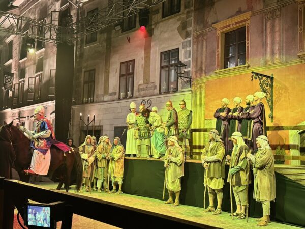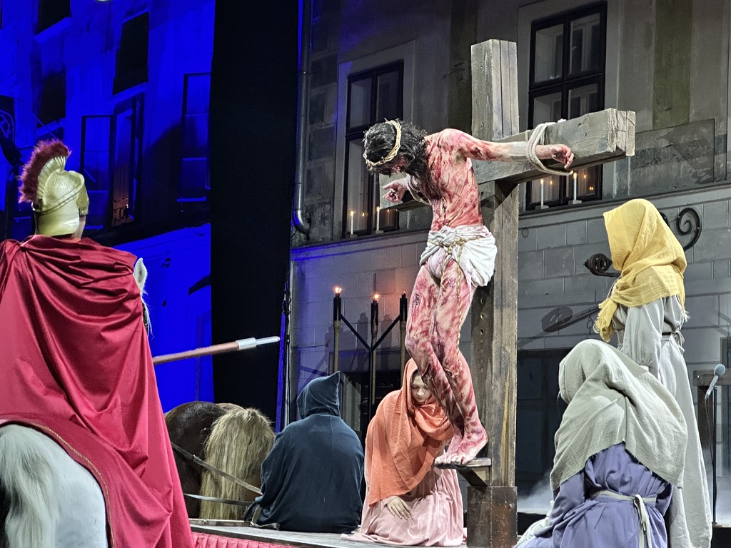 Der Höhepunkt war abends der Besuch der nur alle sechs Jahre von rund 1000 Freiwilligen der Stadt und Umgebung sowie mit rund 80 Pferden inszenierten Passionsspiele. 1721 schrieb ein Kapuzinermönch den Text mit Regieanleitungen. Das in altslowenisch verfasste Spektakel gilt daher als das älteste Regiebuch Europas. Kostüme, Gesänge, Inszenierung an vier Plätzen in der Stadt mittels eines zwei Stunden lang vorbeiziehenden Menschenzuges, gegliedert in rund 25 Szenen, sind so beeindruckend. Man kann das hier nicht beschreiben, man muss es selbst sehen und miterleben.