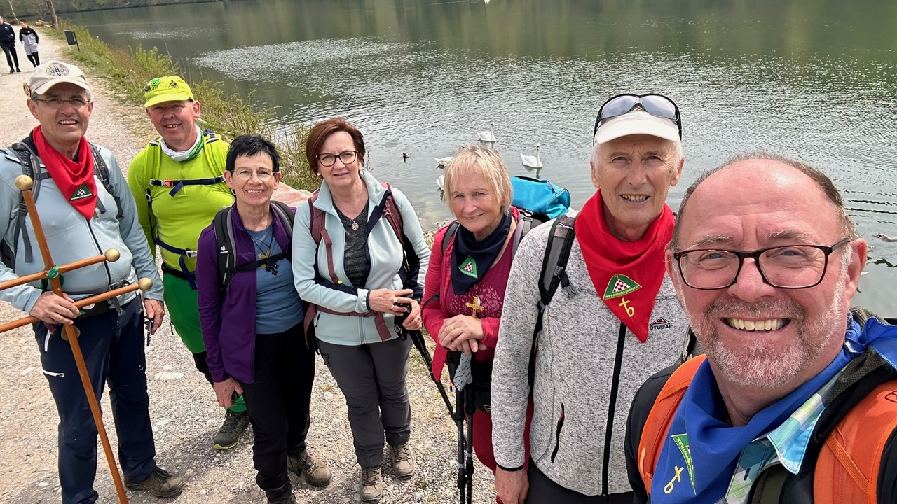 Sieben gut gelaunte Pilgerinnen und Pilger machten sich am 11. April frühmorgens auf die Reise und starteten im Frauenkloster Repnje (bei Vodice, Slowenien) ihre nachösterliche Pilgerwanderung nach Škofja Loka. Dort besuchten sie am Abend die einmaligen und beeindruckenden Passionsspiele. Eine Stadtführung, der Besuch der Hl. Messe in der Kapuzinerkirche und eine Wanderung auf den Schlossberg und über die berüchtigte Teufelsbrücke über die Sora sowie ein gutes Mittagessen rundeten die diesjährige Pilgerwanderreise ab.