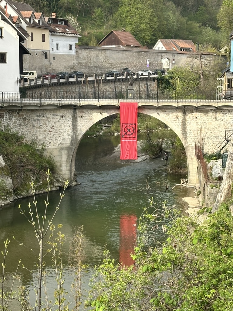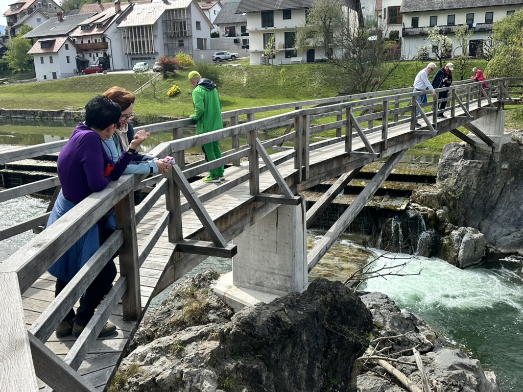 Nach dem guten Mittagessen in der Gostilna Inglič führte uns der ‚Verdauungsspaziergang‘ noch auf den Schlossberg mit dem herrlichen Ausblick über die Region und über die „Teufelsbrücke“ über die „Poljaner Sora“, eine Sehenswürdigkeit in Škofja Loka.
