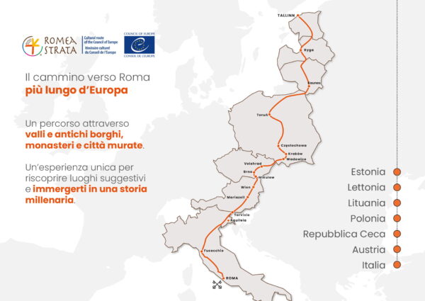 Die Romea Strata ist ein europäischer Pilgerweg, der den Nordosten des Kontinents mit Rom verbindet und durch sieben Länder führt: durch Estland, Lettland, Litauen, Polen, die Tschechische Republik, Österreich und Italien.