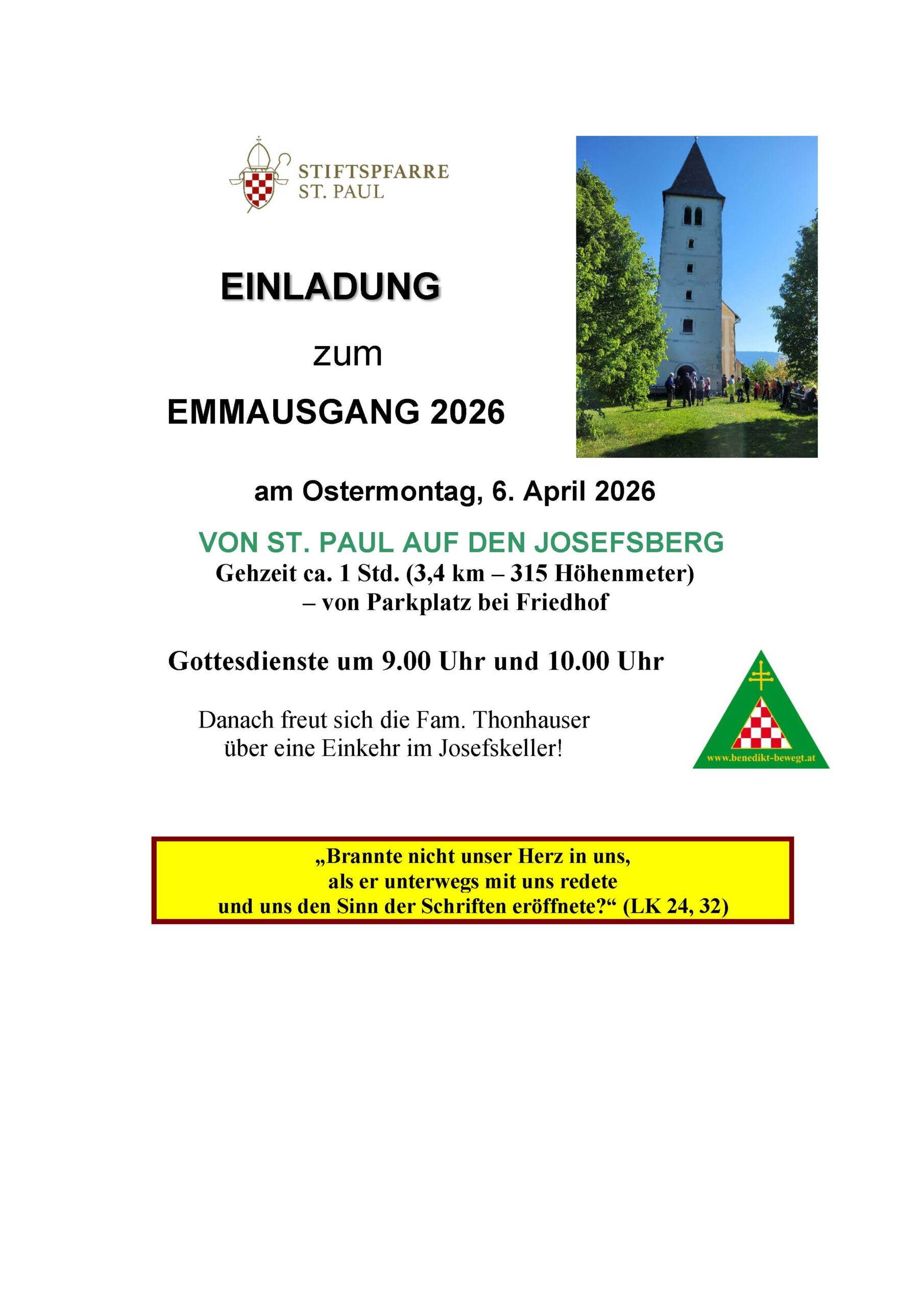 Zum Emmausgang auf den Josefsberg laden wir herzlich ein!
