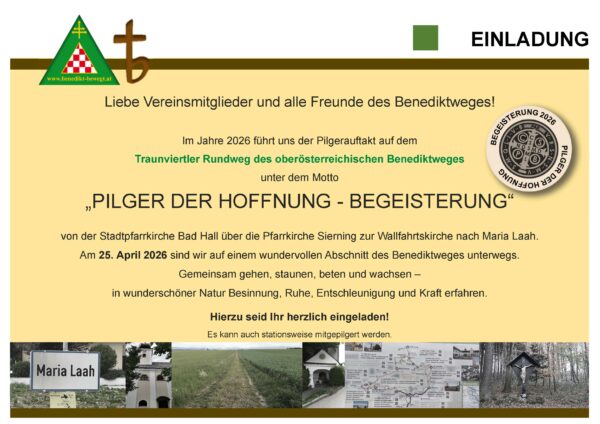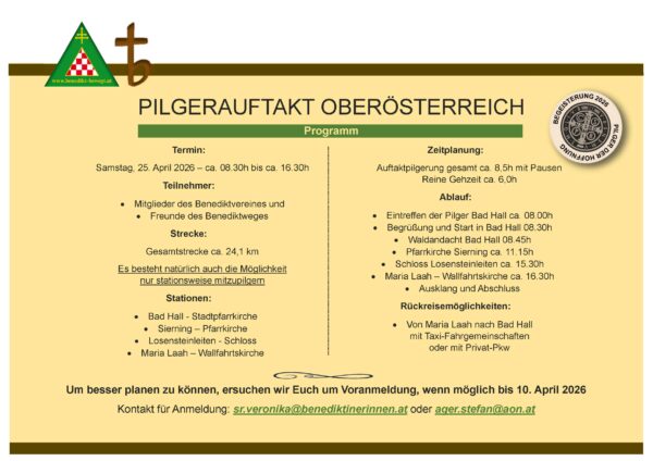Am Samstag, 25. April wird die Pilgersaison mit einer Pilgerwanderung in OÖ eröffnet! Diese führt von Bad Hall nach Maria Laah. Zum Mitpilgern sind alle herzlich eingeladen!